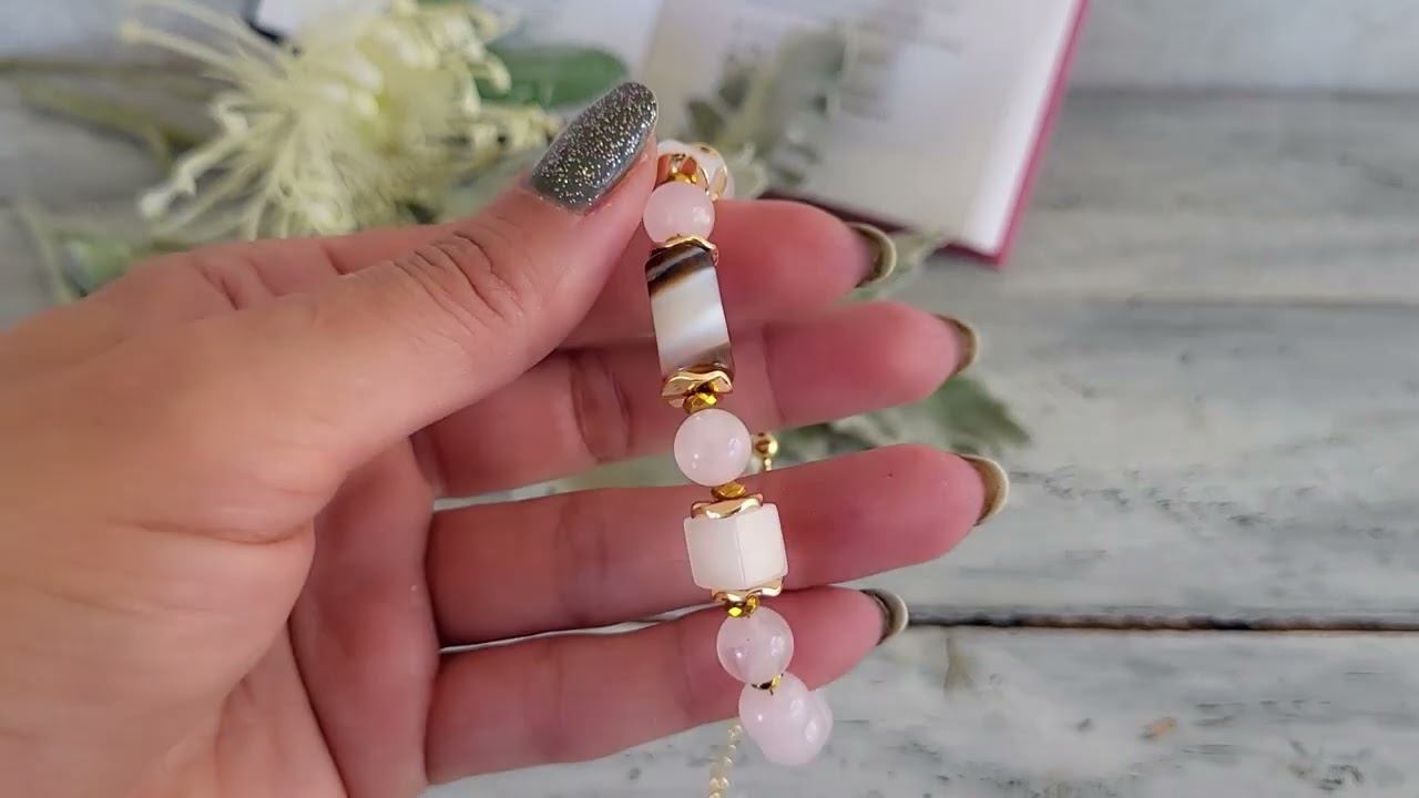 Браслет из розового кварца, агата