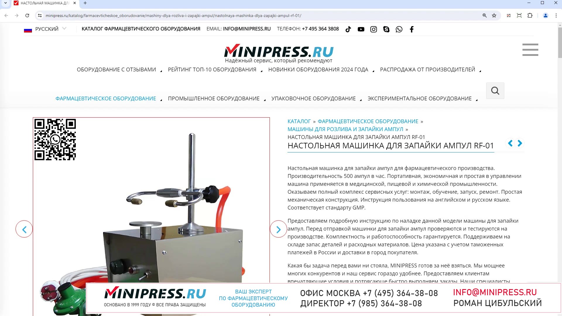 Компания MINIPRESS.RU занимается подбором и поставкой МИКСЕРОВ ПОРОШКОВ И СМЕСИТЕЛЕЙ ФАРМАЦЕВТИЧЕСКИХ для смешивания сухих и увлажненных сыпучих материалов и жидкостей. В нашем каталоге 3D Миксеры, V-Образные Миксеры и Лопастные Миксеры, Магнитные Мешалки, Пьяные бочки и прочее оборудование для подготовки порошков и жидкостей в фармацевтическом, пищевом и косметическом производстве. Компания Романа Цибульского MINIPRESS.RU занимается поставкой большого ассортимента фармацевтического оборудования из Китая, Кореи, Индии, Европы и других стран. Мы выполняем работы по поиску, подбору, закупке, доставке, и таможенной очистке оборудования с доставкой в любой город России и стран СНГ. Основатель и ведущий специалист компании - Роман Цибульский. Компания MINIPRESS.RU (зарегистрированный товарный знак) основана в 2000 году. Онлайн каталог оборудования MINIPRESS.RU ежедневно посещают несколько тысяч человек. Мы развиваем крупные каналы в социальных сетях, посвященные тематике фармацевтического оборудования. Вы можете посмотреть видео ролики об оборудовании, которым мы занимаемся. Фактически у нас самый большой в России многоязычный каталог фармацевтического оборудования с фотографиями, описаниями, и что более важно с ценами и видео демонстрацией оборудования в работе. Подбор оборудования и консультации ведет сам владелец компании - Роман Цибульский. Компания имеет огромный опыт в работе с различным оборудованием, технологиями. Помогаем клиентам выбрать модель фармацевтического оборудования, которое сможет решить поставленную задачу. Наши специалисты помогают рекомендациями в решении проблем по эксплуатации оборудования. Наша компания имеет офис в г.Шанхай и несколько менеджеров, которые помогают в работе с китайскими поставщиками. Мы долго сотрудничаем и дружим с этими специалистами. Китайские поставщики ценят нас как постоянных партнеров. Роман Цибульский Директор компании Минипресс Поставка фармацевтического оборудования в Россию Пишите: info@minipress.ru Gmail: boss.minipress@gmail.com Офис в Москве +7(495)364-38-08 Мобильный +7(985)364-38-08 (WhatsApp) Каталог оборудования https://www.Minipress.ru/katalog/ МИНИПРЕСС.РУ В СОЦИАЛЬНЫХ СЕТЯХ FB https://facebook.com/roman.tsibulsky YOUTUBE https://www.youtube.com/@farmacevticheskoe_oborudovanie INSTAGRAM https://www.instagram.com/farmacevticheskoe_oborudovanie/ #наклейка #технологии #жидкости #мойка #предложение #фабрика #вязкость #конвейер #завод #вибросито