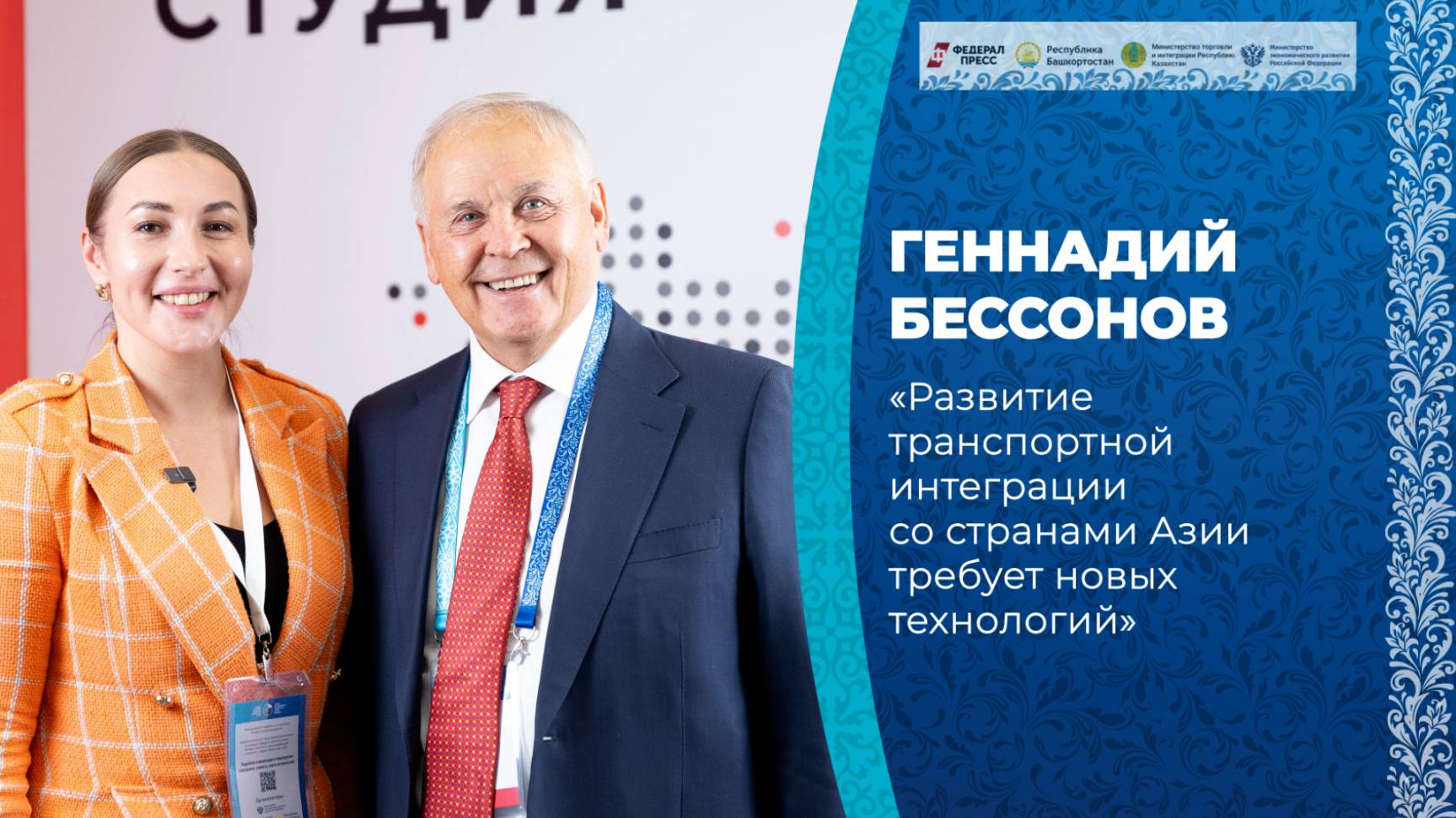 В рамках Открытой студии «ФедералПресс» на форуме «Россия – Казахстан» в Уфе председатель исполкома КТС СНГ Геннадий Бессонов рассказал, что сегодня транспортная сфера является одной из самых эффективных отраслей в нашей стране. Однако взрывной рост товарооборота между Россией и странами Азии, включая Казахстан, ставит новые вызовы для развития международных транспортных коммуникаций. Гость студии поделился своим видением, как можно их решить.