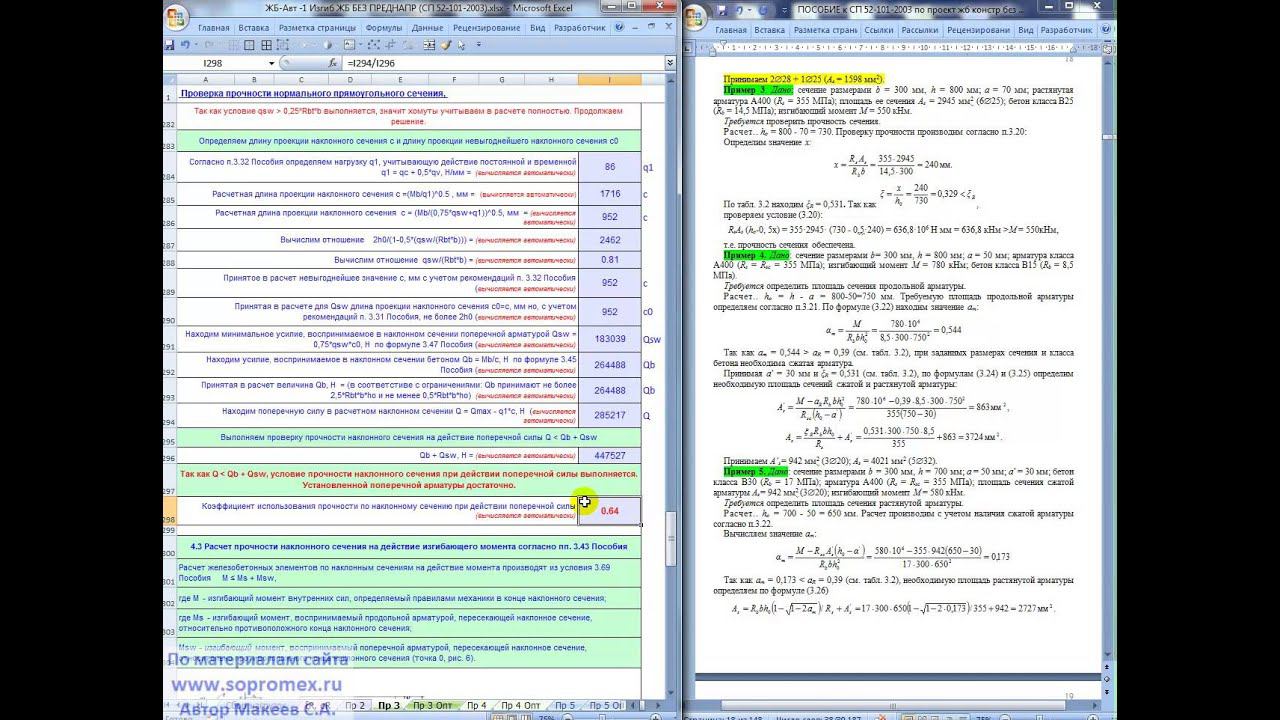 «ЖБ–Автоматизация–1». 11. 1 Решение задач 2-6 из Пособия к СП 52 (Reinforced concrete structure)