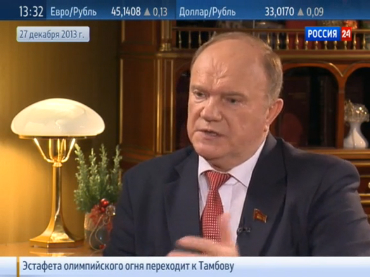 Лидер КПРФ Геннадий Зюганов считает, что правительство в 2013 году могло работать более эффективно, в частности, развивать малый и средний бизнес, поэтому в новом году компартия продолжит настаивать на формировании нового кабинета министров. В тоже время политик отметил значительные успехи России во внешней политике. Итоги 2013 года лидер компартии подвел в интервью каналу "Россия 24".