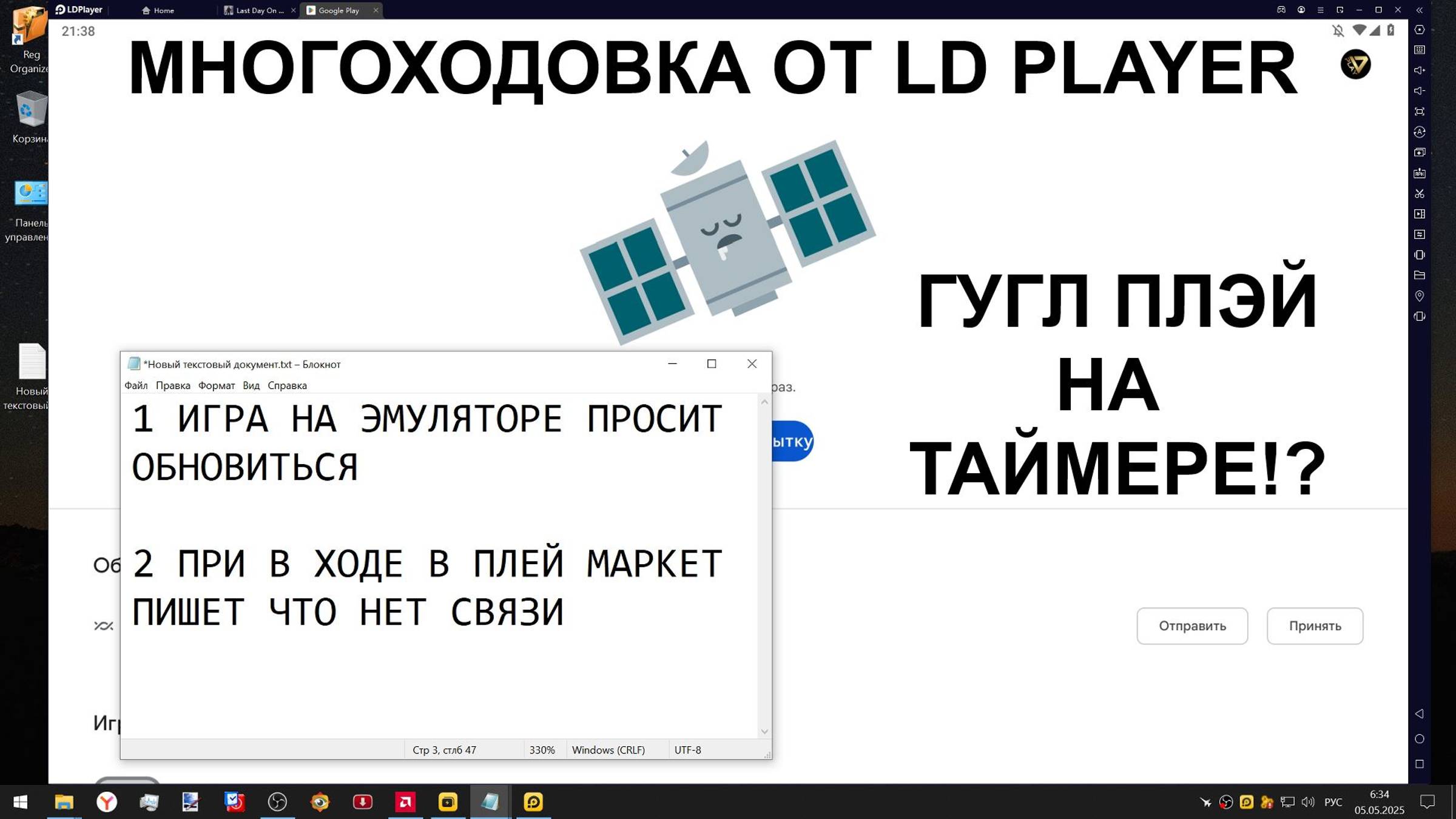 МНОГОХОДОВКА ОТ LDPLAYER ГУГЛ ПЛЭЙ НА ТАЙМЕРЕ НА ПРИМЕРЕ ИГРЫ Last Day on Earth Survival, СОДЕРЖАНИЕ ПОЛНОГО РОЛИКА: boosty.to/almatarix/posts/4e8d742f-d52a-4835-83c7-46d4acb960c3?share=post_link ИГРА Last Day on Earth Survival НА ЭМУЛЯТОРЕ ПРОСИТ ОБНОВИТСЯ, ПРИ ВХОДЕ В ГУГЛ НЕТ СВЯЗИ, РЕШЕНИЕ ЧТО БЫ НЕ ПОТЕРЯТЬ ИГРОВОЙ ПРОЦЕСС, ВЫГРУЗКА СОХРАНЕНИЙ ИГР ИЗ ЭМУЛЯТОРА ПЕРЕУСТАНОВКА ЭМУЛЯТОРА, МОЯ ССЫЛКА ПАРТНЕРА LD PLAYER https://leap.ldplayer.gg/T4lZ9PTHH ПОКАЗЫВАЮ КАК СКАЧАТЬ ЭМУЛЯТОРЫ, КАК ИЗМЕНИТЬ ПУТЬ УСТАНОВКИ ЭМУЛЯТОРА, ЭМУЛЯТОР ЗАВИСАЕТ НА 94% РЕШЕНИЕ, ЗАКРЫВАЕМ ЭМУЛЯТОР И ВОЗВРАЩАЕМ ЗАПИСИ ИГР ОБРАТНО, ЗАПУСК ЭМУЛЯТОРА ВХОД В ГУГЛ ПЛЕЙ СКАЧИВАНИЕ ИГРЫ Last Day on Earth Survival ОШИБКА НЕ УДАЛОСЬ УСТАНОВИТЬ ПРИЛОЖЕНИЕ, РЕШЕНИЕ ОБНОВЛЕНИЕ ГУГЛ ПЛЕЙ СЕРВИСОВ, ЗАПУСК ВПН, ЗАПУСК ЭМУЛЯТОРА, СКАЧИВАНИЕ ИГРЫ LDoE ЗАПУСК ИГРЫ ИГРЫ Last Day on Earth Survival СЛАВА СПЕЦАМ ИГРОВОЙ ПРОЦЕСС НА МЕСТЕ!!! КАК НЕ СОБИРАТЬ 10 ЧЁППЕРОВ В ИГРЕ ПОСЛЕ ПЕРЕУСТАНОВКИ ЭМУЛЯТОРА, КАК СОХРАНИТЬ ВРЕМЯ И НЕРВЫ В ИГРЕ Last Day on Earth Survival