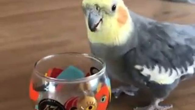 Птица опрокинула рюмку на столе и получило удовлетворение. #попугай #птица #прикол #рюмка