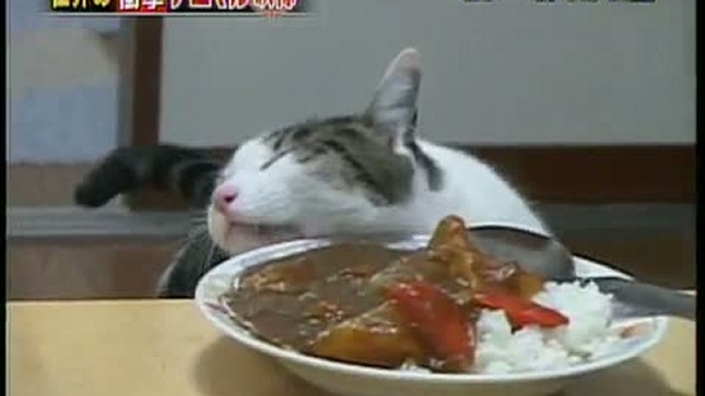 Этот кот очень любит карри, ему даже есть не обязательно, главное - аромат!