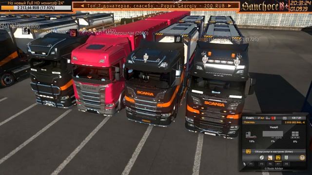 ╬═══════════════════════════════════════════╬ ░░. ДОНАТ НА СТРИМЕ: http://www.donationalerts.ru/r/sanchoce .░░ ╬═══════════════════════════════════════════╬ ░░ WebMoney: R369725180699, U243411679969, Z100524862515 ░░ ╬═══════════════════════════════════════════╬ Не забывай ставить ПАЛЕЦ ▲ВВЕРХ▲ и ПОДПИСАТЬСЯ канал. ▬▬▬▬▬▬▬▬▬▬▬▬▬▬▬▬▬▬▬▬▬▬▬▬▬▬▬▬▬▬▬▬ ┈► МУЛЬТИСТРИМИНГ на каналы: ● TWITCH: https://www.twitch.tv/sanchoce ● Группа в ВК: https://vk.com/sanchoce_channel ● GoodGame: https://goodgame.ru/channel/sanchoce ▬▬▬▬▬▬▬▬▬▬▬▬▬▬▬▬▬▬▬▬▬▬▬▬▬▬▬▬▬▬▬▬ Группа в ВК "ВТК Интегра": https://vk.com/integra_truckersmp Мой профиль TruckersMP: https://truckersmp.com/user/145396 Мой профиль VTC.World: https://vtc.world/cp/users/view/?user=329 Мой профиль World of Trucks: https://www.worldoftrucks.com/en/online_profile.php?id=141840 Мой профиль Facebook: https://www.facebook.com/sanchoce ▂▂▂▂▂▂▂▂▂▂▂▂▂▂▂▂▂▂▂▂▂▂▂▂▂▂▂▂▂▂▂▂ Мой компьютер: ✎ ЦП: AMD FX-6300 3.5GHz/8MB; ✎ материнская плата: ASUS M5A78L-M LX; ✎ ОЗУ: Kingston 8Gb/1600MHz + Kingston 4Gb/1600MHz; ✎ видеокарта: Palit GTX 1050 DUAL OC 4086Mb; ✎ SDD: Kingston SSDNow V300 120GB; ✎ HDD: Seagate 500Gb; ✎ HDD: Toshiba 3Tb; ✎ мониторы: LG Flatron L1717S 17" + Acer G195HOV 19"; ✎ ОС: Windows 10 Pro; ✎ игровой руль: Bravis PU-V66 ✎ клавиатура: A4Tech KAS-15MU ✎ мышь: A4Tech X7 V-Track F4 ▬▬▬▬▬▬▬▬▬▬▬▬▬▬▬▬▬▬▬▬▬▬▬▬▬▬▬▬▬▬▬▬ Благодарю за поддержку. #Sanchoce #EuroTruckSimulator2 #TruckersMP