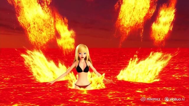 Падение девушки в море раскаленной лавы.