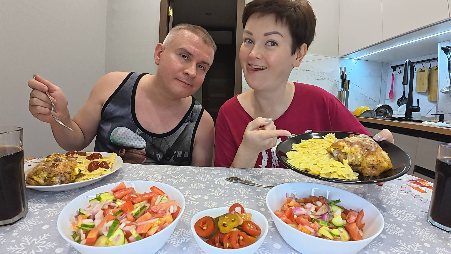 Мукбанг аж СЛЮНЬКИ текут, от такой ВКУСНОТЫ! ОБГЛОДАЛИ кости! ОБМЫЛИ новую духовку) Семейный ужин