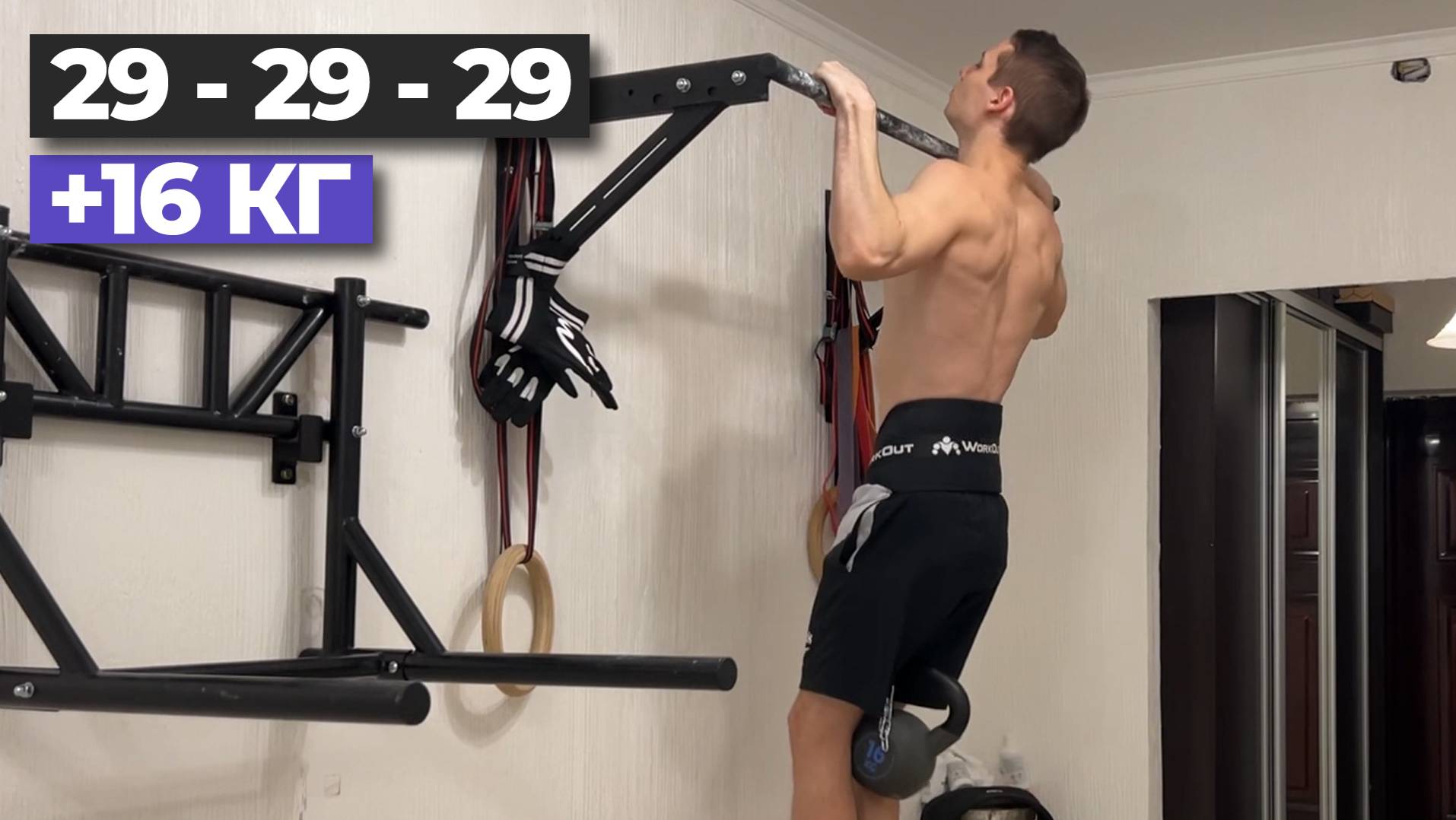 29 подтягиваний - 29 отжиманий на брусьях - 29 приседаний с +16 кг