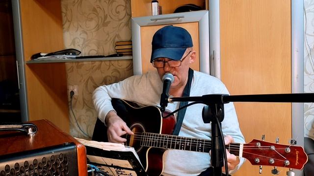 Уличный музыкант из города Архангельска исполняет песни под гитару,живой звук.