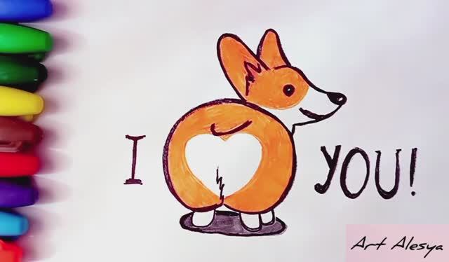 Как нарисовать прикольную открытку I love you 💓 с Корги 🥰