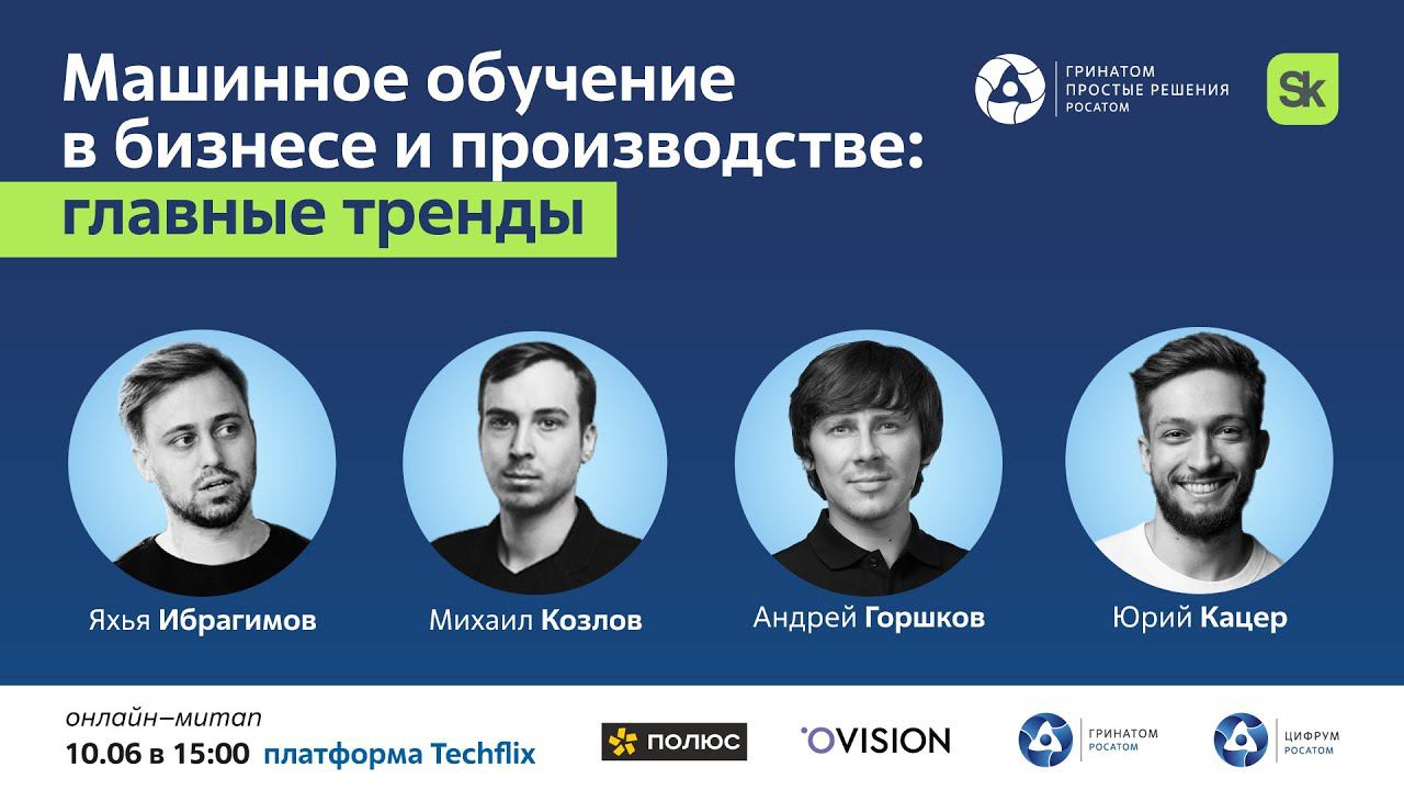 Сегодня благодаря AI-технологиям бизнес стремительно меняется и входит в повседневную жизнь. Машинное обучение делает процессы дешевле, уменьшает количество ручного труда, исключает риск ошибки из-за человеческого фактора. О трендах, направлениях и возможных перспективах внедрения машинного обучения поговорим на онлайн-митапе с экспертами Гринатома, Полюса, Цифрума (Росатом) и Ovision. На примере кейсов узнаем, как оно работает, разберем главные тренды развития AI-технологий: 15:00 – 15:30 Кейс «Аврора: Система анализа спутниковых снимков для определения на них различных объектов»; «Цифровые двойники. Частичная или полная замена функциональных обязанностей сотрудника с помощью технологий роботизации и искусственного интеллекта», Яхья Ибрагимов, руководитель направления ИИ, АО «Гринатом» 15:30 – 16:00 Кейс «Цифровой советчик водителя», Андрей Горшков, начальник управления проектов трансформации и информатизации, ПАО «Полюс» 16:00 – 16:30 «Опыт проектов с ИИ в промышленности», Юрий Кацер, Цифрум (Росатом) 16:30 – 17:00 «Технологии компьютерного зрения и машинное обучение. Как работают и где применяются», Михаил Козлов, Founder, Ovision
