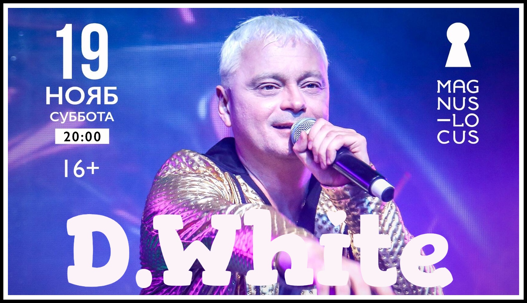 19 ноября 2022 года на большую сцену клуба "Magnus Locus" выйдет Дмитрий Белый и в сопровождении группы «Discoband» представит концертную программу в стиле NEW Italo Disco и Euro Dance проекта D.White. В этот день — презентация нового третьего сольного альбома проекта D.White - "Towards the Sun". 19 ноября 2022 / Суббота / Начало в 20:00 часов Адрес: Москва, Проспект Мира 12c9, Ресторан & клуб Magnus Locus (метро Сухаревская) Продолжительность концерта — 2 часа. Сбор гостей: с 19:00 Билеты в продаже - https://magnuslocus.ru/dwhite1911 Subscribe to our channels: https://vk.com/d.white.singer https://dwhiteid.bandcamp.com #DWhite #italodisco #EuroDance #disco80 #Eurodisco #NewLegendItaloDisco #ItaloDiscoNewGeneration