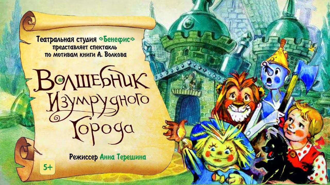 Театральная студия «Бенефис» представляет спектакль по мотивам книги А. Волкова «Волшебник Изумрудного города». Это сказочная история про девочку Элли и щенка Тотошку, которые случайно попадают в волшебную страну. Вернуться домой им поможет волшебник Изумрудного города. По дороге в город Элли встречает Страшилу, Железного Дровосека и Льва. Вместе они преодолевают множество трудностей, возникших у них на пути. "Мозги не делают человека счастливым, а счастье – лучшее, что есть на земле." - говорит Страшила. Так какое же оно, Счастье, для каждого из героев этой истории? Узнаем вместе!? Пройдя по дороге из жёлтого кирпича... Режиссер Анна Терешина.