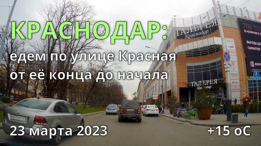 Краснодар: едем от кинотеатра Аврора по улице Красная от её конца до начала 23 марта 2023 года