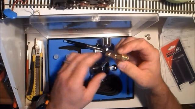 Come learn with me as i open the Airbrush i got form my wife Dual action airbrush Feed Type: Gravity & Suction Double-action trigger air-paint control Specifications Nozzle Dia. 0.2mm, 0.3mm & 0.5mm Needle Dia: 0.2mm, 0.3mm & 0.5mm Cup capacity: 7cc Glass jar capacity: 22cc Spanner: 1pc Air hose: 1.8m Regulator: G1/4-G1/8 Working Pressure: 15-50psi Case dimension: 17.5 (L) x 23.5 (W) x 4.5 (D) cm