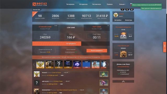 Вейнард играет на рулетке дота2►Полный П►Как окупиться!?