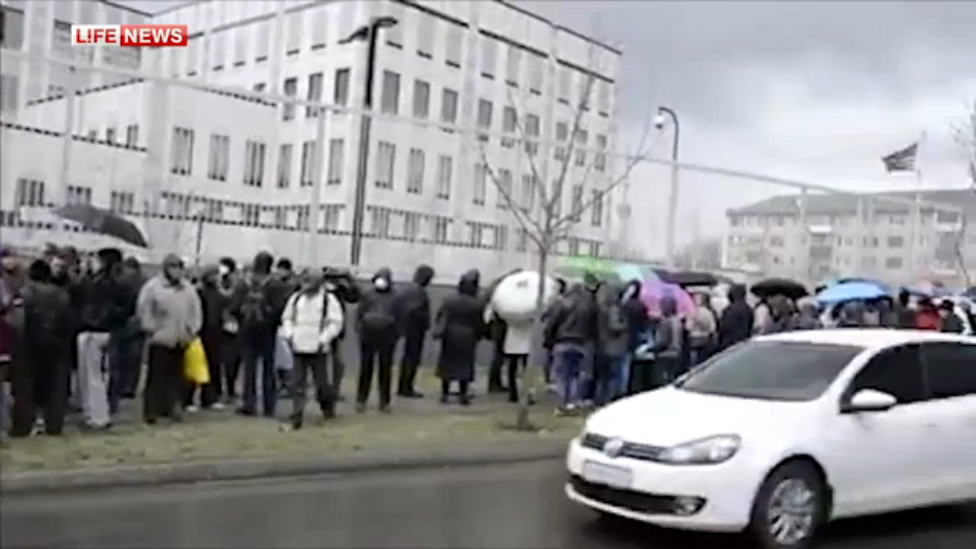Митингующие забросали посольство США в Киеве навозом. © LIFENEWS