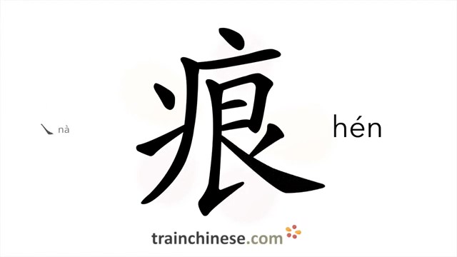痕 (hén) mark, trace; scar