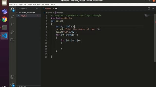 The official YouTube channel of Infography Technologies Pvt. Ltd. A Data Science training institute based in Nepal. This video tutorial explains about a C program to generate Floyd Triangle. • Tutor: Prakash Chandra Prasad Disclaimer: All the videos in this channel are for educational purpose. Any kind of use of the videos or contents of this channel without the owner's permission is strictly prohibited. Full playlist of C programming complete syllabus (IOE): https://www.youtube.com/playlist?list=PLYwrDCC_pg4FZR4BVi6VawiM1re7FR1ad This easy explanation playlist on C programming will help you learn C programming from basics to advance with examples and practice questions. Also check out the following playlists related to C programming: C programming old questions discussion: https://www.youtube.com/playlist?list=PLYwrDCC_pg4Ec2MSWTEj0tN9HnPLue6VJ C project competition-2021: https://www.youtube.com/playlist?list=PLYwrDCC_pg4EJ0KsXWfD5b5wpoqO-dg7T C program frequently asked theory questions: https://www.youtube.com/playlist?list=PLYwrDCC_pg4G42kSx4dUyHFCwqBIaTu8h C programming MCQs: https://www.youtube.com/playlist?list=PLYwrDCC_pg4G3JCMZgtgwkxNGZXdV8xwC C programming (theory +solved questions): https://www.youtube.com/playlist?list=PLYwrDCC_pg4FHmsmyuMv_GsBGHiwG-Tp4 Subscribe to our channel to get video updates. Hit the subscribe button and bell icon above. Website of Easy Explanation: https://easyexplanationinfo.wordpress.com/ Also join us on, Join our Data Science Community on Facebook: https://www.facebook.com/groups/InfographyTechnologies/ Facebook Page: https://www.facebook.com/InfographyTechnologies Instagram: https://www.instagram.com/infographytechnologies/ Tik-tok: https://www.tiktok.com/@infographytechnologies Linked-in: https://www.linkedin.com/company/infographytechnologies/ Never miss any updates, events, trainings and workshops organized by Infography Technologies. Visit our website: http://www.infographytech.com/ Contact us: 984-0143772 infographytech9@gmail.com Address: Kupandole, Lalitpur, Bagmati 46001, NP #C_Programming #floyd_triangle #easy_explanation #infography_technologies