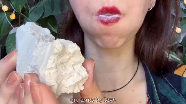 Всем привет 👋 Видео раньше всех можно посмотреть на Бусти (+ там есть несколько эксклюзивных роликов) https://boosty.to/mycrunchylove?share=ios_blog_link Мой тг канал, где кружочки с хрустом🔥 также там можно заказать мел и глину у меня, ассортмент нереально огромный, качество гарантировано (рейтинг 5.0 на авито вам не хухры мухры 😎) https://t.me/mycrunchylove В сегодняшнем видео хрущу одной из моих самых любимых глин - Молочная🥛Она определено занимает одно из призовых мест в моем топе🏅 Это орская глина, она достаточно мягкая, легко откусывается. Приходит она разная от партии к партии. В этот раз она местами рыхлая, как песок, местами слоистая, местами уплотненная. Цвет варьируется от молочного до цвета крем-брюле. Те кусочки, что на видео - больше рыхлые и второй чуть плотный местами. Мелко крошится при откусывании, хрустит звонко, лопается как хлопья или кукурузные палочки, очень приятная структура, не ранит рот, сначала очень сухая крупинчатая масса во рту, затем она нежно тает, обволакивает, залипает не критично, в этой партии со скрипом. Глина сухая, вкус пыли, молока, горячего песка. Рекомендую запивать водой, так вкуснее! Раскрывается вкус молока. Мел и глины не глотаю и никому не советую! Спасибо за просмотр🤍 Hello everyone 👋 You can watch the video first on Boosty (+ there are several exclusive videos there) https://boosty.to/mycrunchylove?share=ios_blog_link In today's video I'm crunching one of my favorite clays - Molochnaya🥛It definitely takes one of the prize places in my top🏅 This is Orsk clay, it is quite soft, easy to bite off, in this batch it has different structures - in some places it is loose, like sand, in some places it is layered, in some places it is compacted. The color varies from milky to the color of crème brulee. Those pieces that are in the video are more loose and the second one is a little dense in places. It crumbles finely when bitten, crunches loudly, bursts like flakes or corn sticks, very pleasant structure, does not hurt the mouth, at first a very dry granular mass in the mouth, then it gently melts, envelops, sticks not critically, in this batch with a creak. The clay is dry, the taste of dust, milk, hot sand. I recommend washing it down with water, it tastes better! The taste of milk is revealed. I don't swallow chalk and clay and I don't recommend it to anyone! Thanks for watching🤍