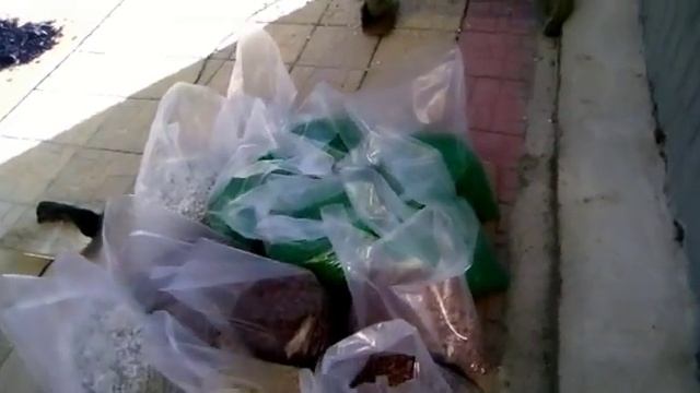 Фасовка декоративного цветного щебня. цветная крошка.