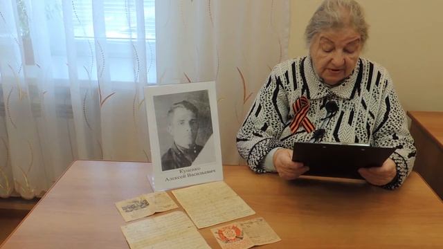 #БелгородскиеПисьмаПобеды Письмо читает жительница села Серетино Яковлевского городского округа Белгородской области Щербак Лидия Алексеевна, дочь Куценко Алексей Васильевич родился в 1910 г., в пос. Борисовка Белгородской области. Призван на фронт в 1941 году. Участвовал в боях на Курской дуге. Был пулеметчиком, младший сержант. Погиб 21 августа 1943 года. Похоронен в с. Бороновка Сумского района Сумской области.