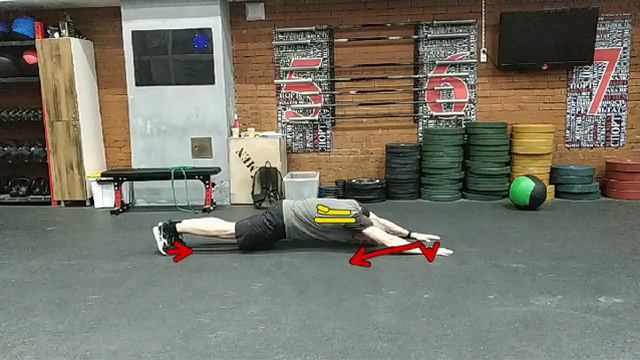 Планка на прямых руках, выведённых вперед