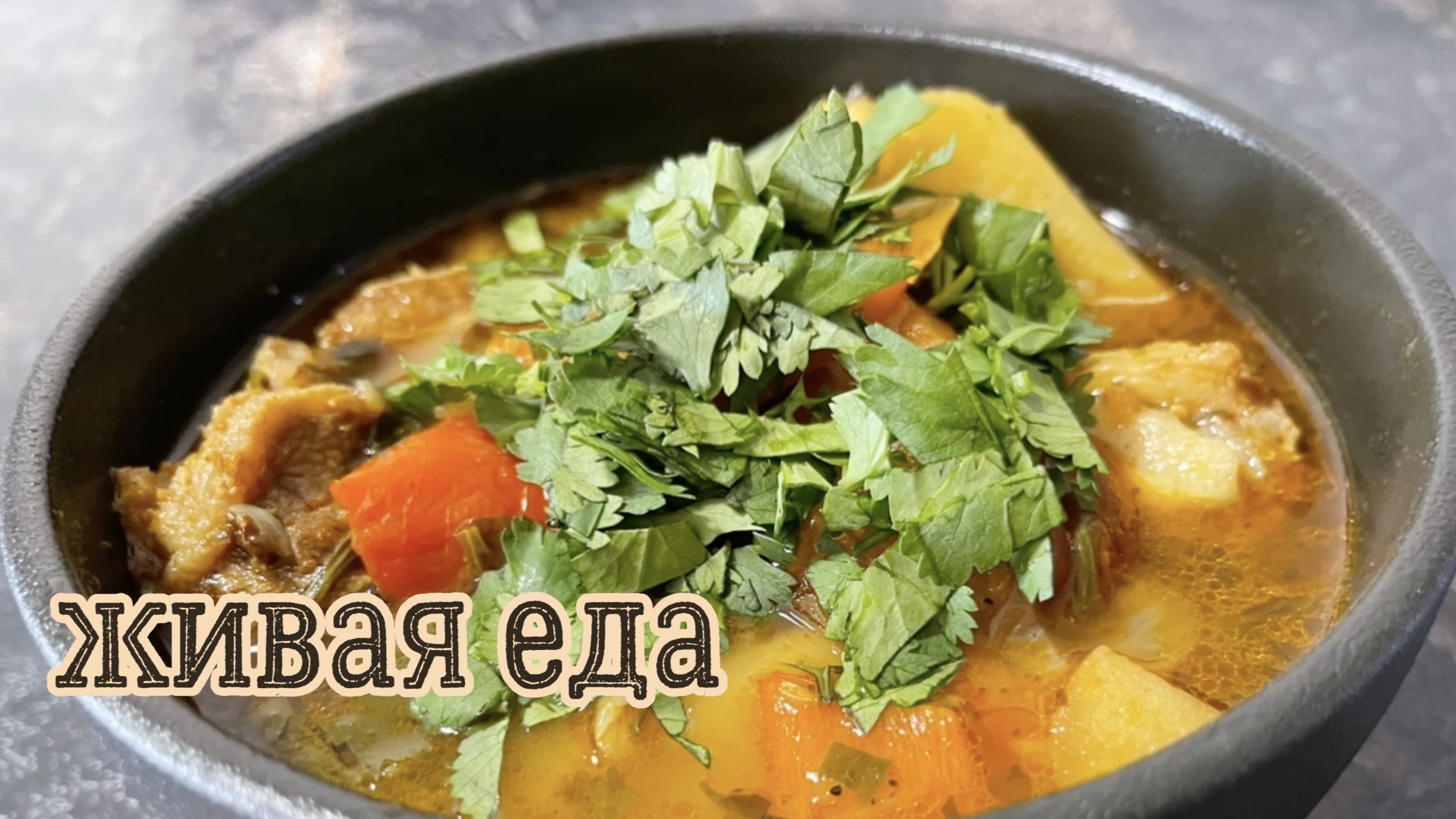 Мясо, овощи и бульон! Живая еда.