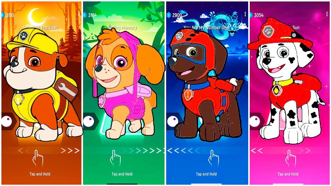 Мультики для Детей Щенячий Патруль Tiles Hop - КРЕПЫШ, СКАЙ, ЗУМА, МАРШАЛЛ