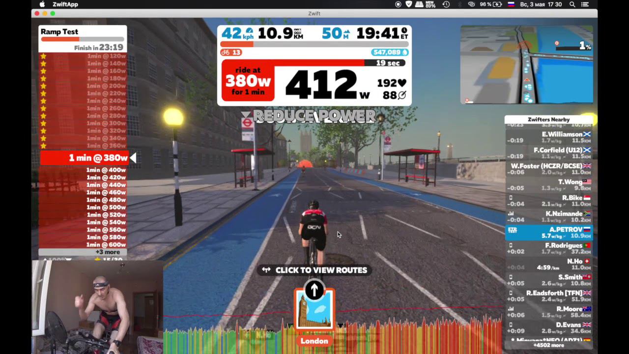 предыдущий тест 17.11.19 дошел до 400вт, при весе на 3-4 кг больше нынешнего https://www.strava.com/activities/3390012876/overview