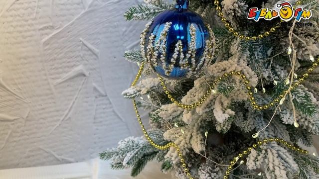 331660 Украшение елочное Шар с узором из белого бисера с золотистыми элементами синий стекло 8см