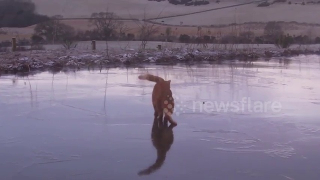 Где-то в Шотландии. " Каждый раз ,как пруд замерзает, Кот по имени Туи идет на нем кататься". #кошки #лёд #зима #забава