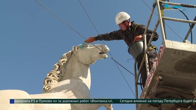 15 мая 2025 года Сюжет программы "Утро в Петербурге" Корреспондент Екатерина Сюзёва Водные процедуры принимают сегодня и мраморные Диоскуры у портика Центрального выставочного зала Манеж. Что входит в СПА-программу скульптурной композиции, узнала Екатерина Сюзёва.