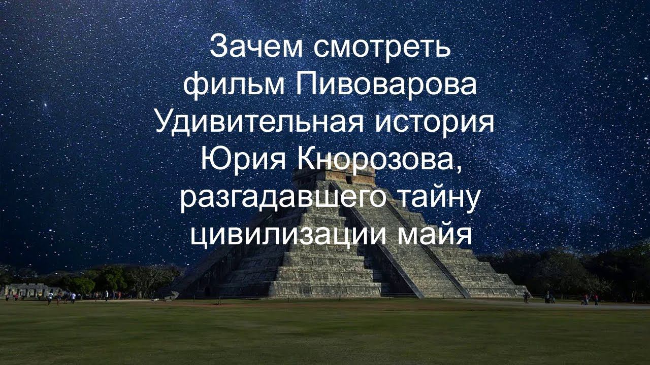 Зачем смотреть фильм Пивоварова Редакция Удивительная история Юрия Кнорозова, разгадавшего тайну цивилизации майя https://ru.wikipedia.org/wiki/Кнорозов,_Юрий_Валентинович https://www.youtube.com/watch?v=F4MRWuTebRE Тайминг: 0:33 Вступление 0:47 Кто такой Кнорозов 1:00 Биография Кнорозова кратко 1:37 Упоминание о Кнорозове в романе Глуховского 2:10 Препоны в науке 2:40 Фильм "заражает" 2:50 Про цивилизацию майя 3:40 Футбол майя 4:20 Особенности характера Кнорозова 5:12 Терпимо относиться к людям 5:30 Нет идеализации 5:46 Записывайтесь ко мне на психологическую консультацию Если вы хотите помочь развитию канала: карта 4276550075167943 яндекс деньги: 410011549549324 Для записи к психологу Родиону Чепалову на психологическую консультацию контакты: chepalych@mail.ru https://vk.com/id895678 https://www.facebook.com/chepalych https://www.instagram.com/rodion_chepalov/ https://www.tiktok.com/@rodion_chepalov? https://ok.ru/profile/847732829 https://twitter.com/rodionchepalov https://rodion-chepalov.livejournal.com/ https://www.tumblr.com/blog/rodionchepalov https://t.me/psiholog_Rodion_Chepalov https://zen.yandex.ru/id/59fd907b482677988c258a7e https://www.facebook.com/Rodion.Chepalov.Psiholog https://www.facebook.com/groups/3157648921120699/ https://vk.com/public209649238 Теперь я пишу и говорю о психологии также на Патреоне. Приглашаю вас подписаться на мой Патреон, стать моими патронами и, тем самым, поддержать распространение психологических знаний: https://www.patreon.com/chepalov