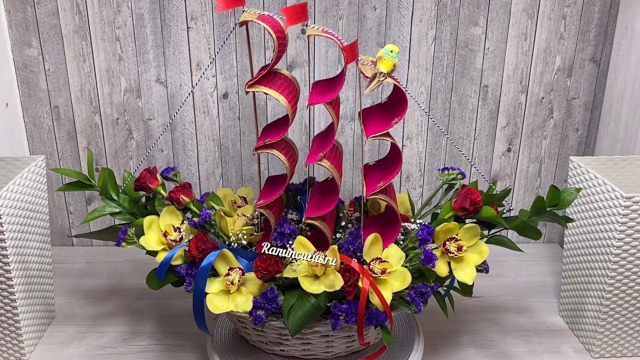 Фрегат из живых цветов