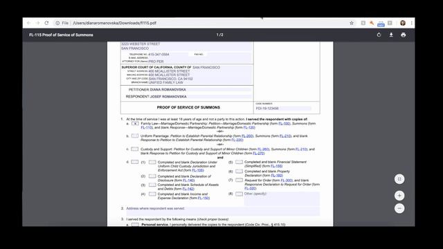How to fill out Form FL-115, Proof of Service of Summons, Divorce Attorney in San Francisco, CA