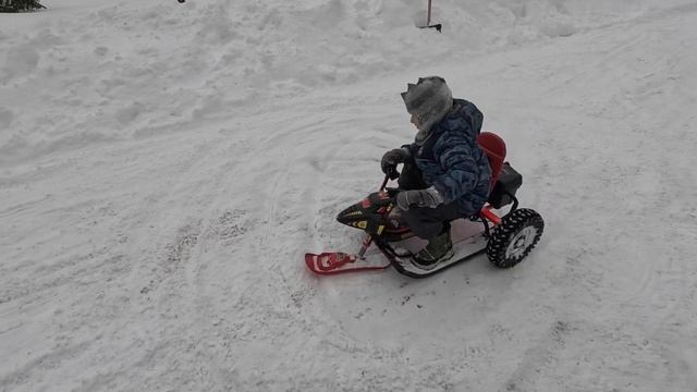 СЫНОВЬЯ ДРИФТУЮТ НА САМОДЕЛЬНОМ ЭЛЕКТРО-СНЕГОКАТЕ. Такого вы ещё не видели!