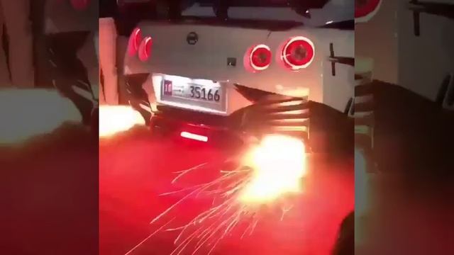 Дикий выхлоп GTR.ниссан скайлайн