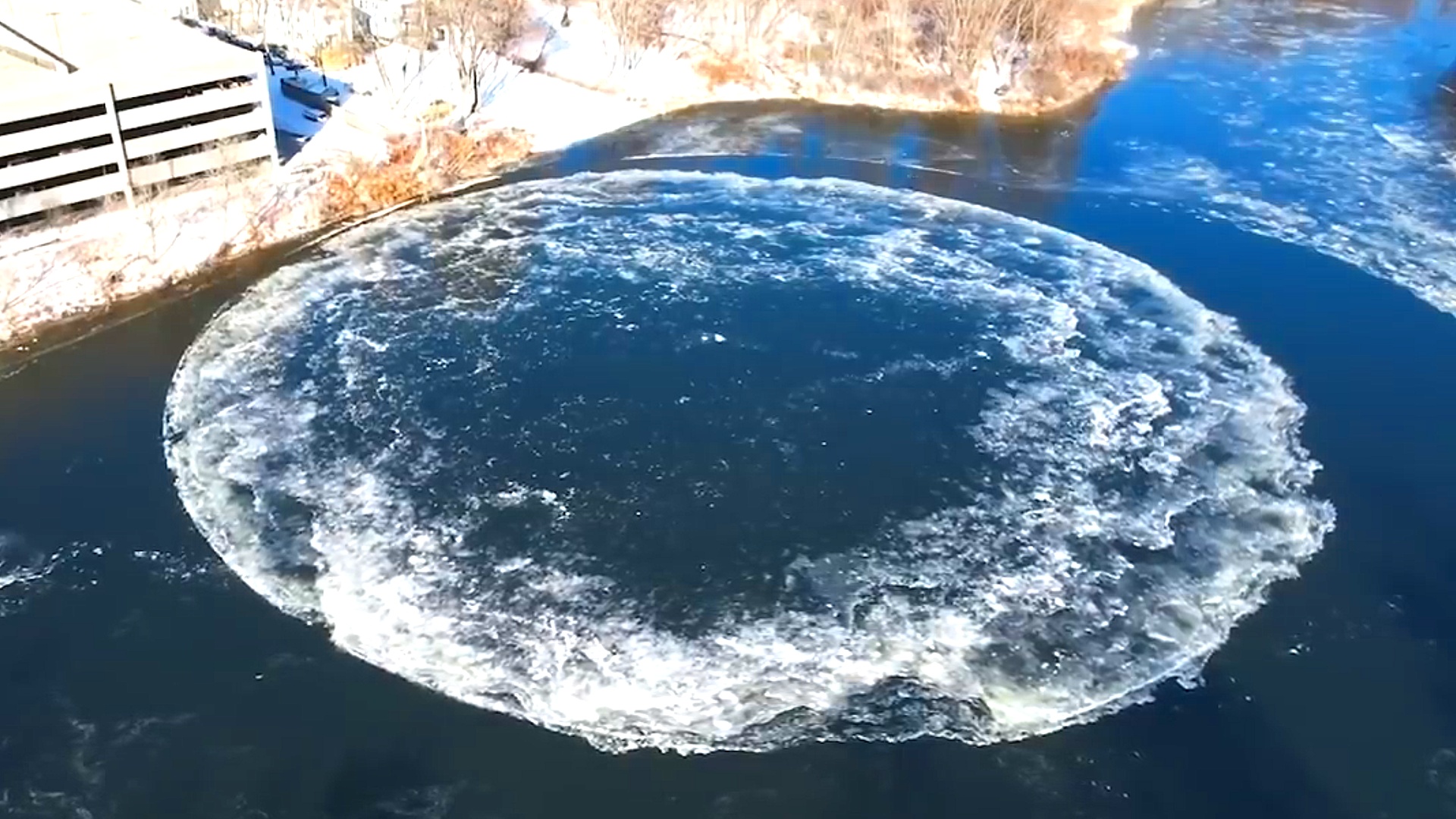 Вращающийся ледяной диск на реке, необычное явление в США.mp4