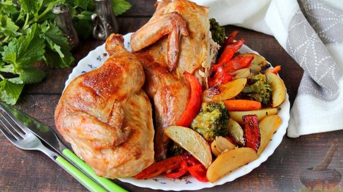 Запечённая птица с калейдоскопом овощей. КУРИЦА, ЗАПЕЧЁННАЯ С ОВОЩАМИ