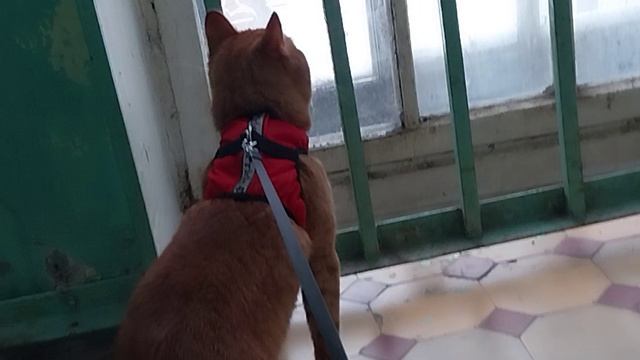 Классное видео о рыжем коте:Тот самый идёт на прогулку.
