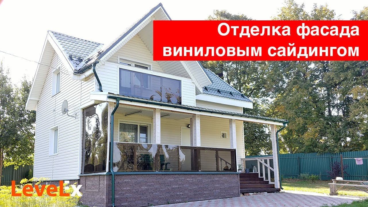 Отделка фасада загородного дома виниловым сайдингом.
