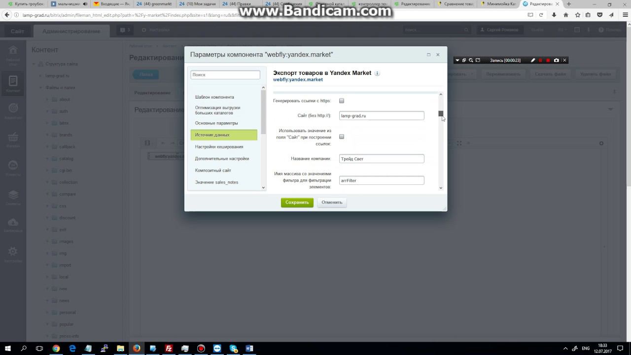 редактирование файла из админки 1с Битрикс