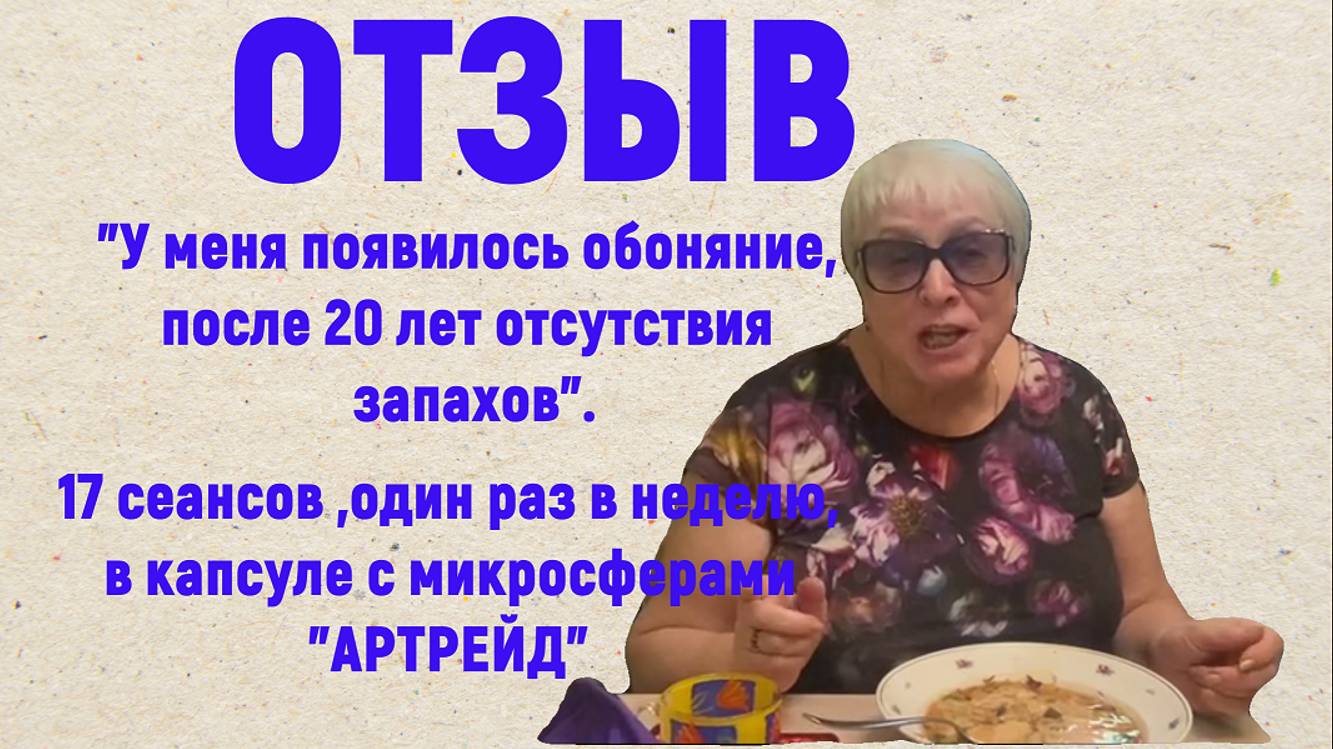 Произошла случайность. Закончился 17 - ый сеанс в капсуле. На плите стоял, приготовленный мной, супчик и клиентка, проходя мимо кухни , говорит: " Какой приятный запах супа." При этом удивляется и произносит, что почти 20 лет не чувствует запахи. https://krisko-club.ru – купить изделия с микросферами "Артрейд" и "ЭВА" 📞 тел.: +7 (993) 362-87-48 - заказать микросферы "Артрейд" и "ЭВА" (мск) БЕЛАРУСЬ +375 29 627-02-80 Владимир ЛИТВА www.aromavitality.eu ГЕРМАНИЯ https://www.smart-bm.net/nado/ Наши каналы в 📲Telegram: https://t.me/krisko_svetlodar https://t.me/mikrosferiy #Светлана_Крисько #Крисько #микросферы #изделия_с_микросферами #Артрейд #ЭВА #Подушки_Артрейд #Artraid #Artraid_изделия #SBM #микросферы_отзывы #отечественные_разработки
