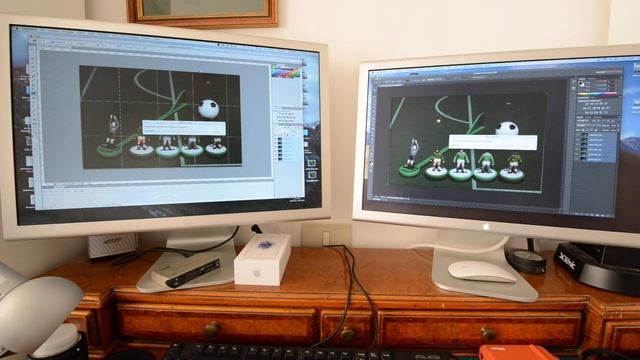 MacPro 5,1 mid 2012 with two Xeon X5690 @ 3.46 GHz vs Mac mini 8,1 2018, time to align and fuse layers in Photoshop. MacPro to the left, Mac mini to the right.