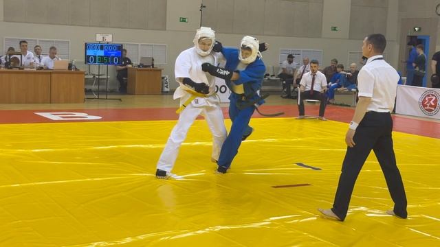 26.04.2025 в Самаре прошли Всероссийские соревнования по кудо «Кубок Поволжья». Бой в категории до 250 ед. 14-15 лет. В синем Максим Андронов (Респ. Мордовия), в белом Захар Шерстобитов (Челябинская обл.).
