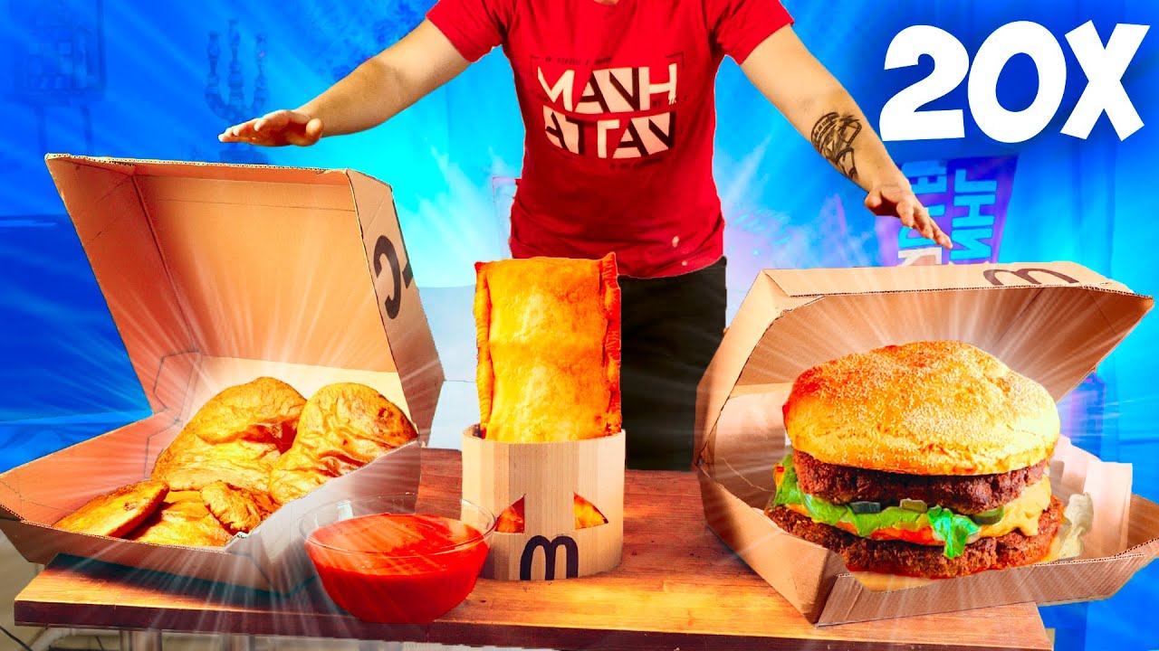 УВЕЛИЧИЛИ МЕНЮ McDonald’s в 20 раз / ОГРОМНЫЙ БИГ МАК / КУРИНЫЕ НАГГЕТСЫ / ПИРОЖОК С ВИШНЕЙ /