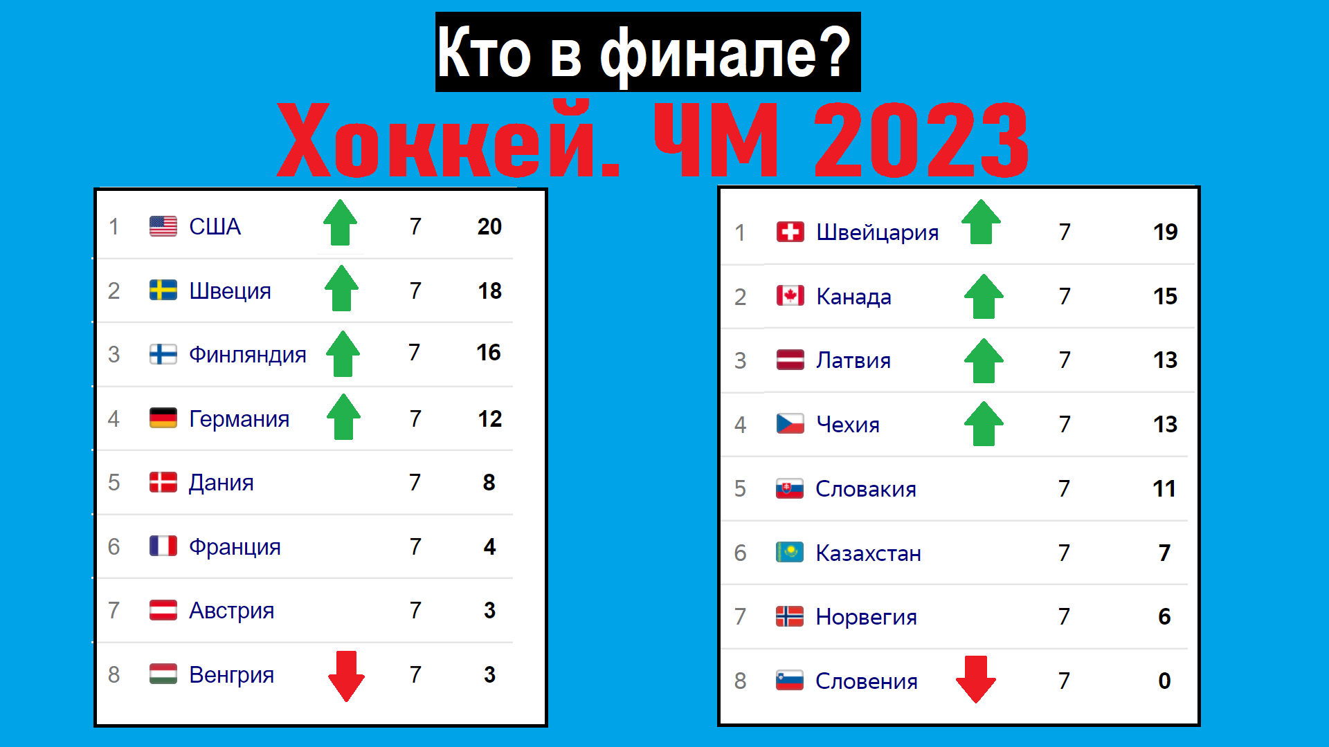 ЧМ по хоккею 2023. Кто в финале? Результаты 1/2, расписание.
