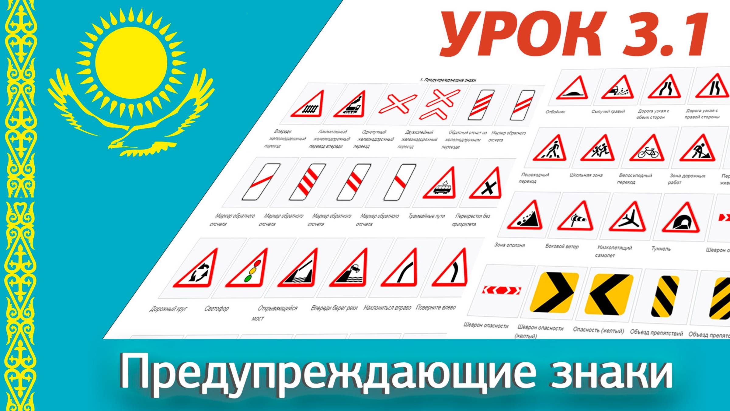 Обновлённый урок 3.1 “Предупреждающие знаки” ПДД РК. Видеокурс ПДД Республики Казахстан 2025