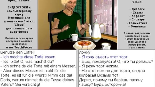 Полная версия курса: http://teachpro.ru/Course/GermanSchool14?utm_source=youtube&utm_campaign=GermanSchool14 Мультимедийный интерактивный самоучитель (учебный курс) «Немецкий язык для школьников 1-4 классов» - удобное и эффективное пособие для самостоятельного изучения немецкого языка, разработанное в соответствии с концепцией современного интенсивного обучения иностранным языкам. Год издания: 2007 Курс состоит из следующих разделов: Диалогов: 152 Изучение алфавита: 26 Сказки (в курсе): 3 Слов и иллюстраций в словаре: 5000 Лекций по грамматике: 18